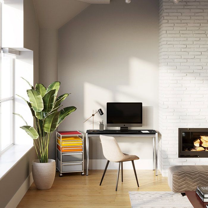 S’illustrant par son design épuré et moderne et sa polyvalence incomparable, cette table étroite USM Haller de 50 cm de profondeur se révèle une solution élégante et pratique pour concevoir un vrai poste de travail dans un petit espace.