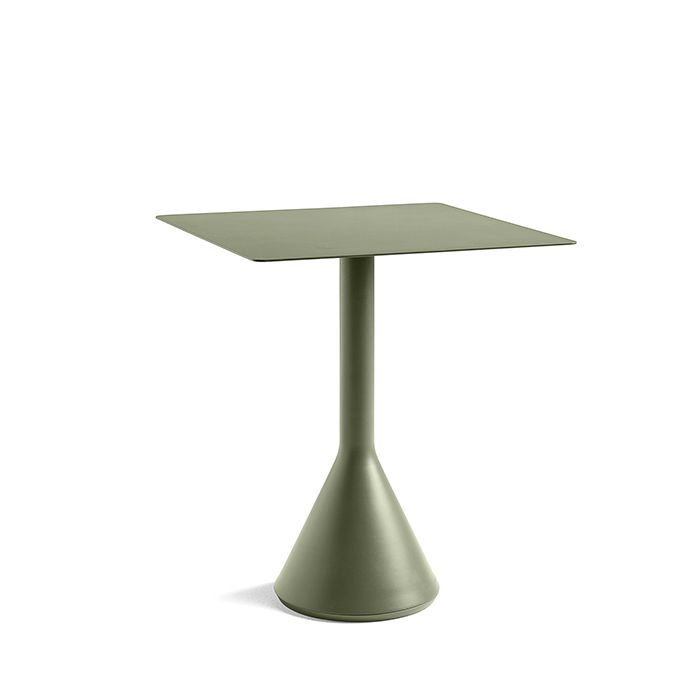 Palissade Cone Table de Hay de Ronan et Erwan Bouroullec. Le duo de designers français Ronan et Erwan Bouroullec se sont associés à HAY pour créer la Cone Table. Sa base solide et son plateau en acier ultrafin partagent le même graphisme que le reste de la série, permettant à la table d'être forte sans être encombrante et élégante sans être fragile. La série comprend différentes tailles avec des plateaux ronds et carrés; Tous dotés d'une base en béton stabilisant. Conçu spécifiquement pour une utilisation en extérieur, l'acier à revêtement en poudre est doté d'un apprêt extérieur protecteur pour une durabilité et une résilience optimales.