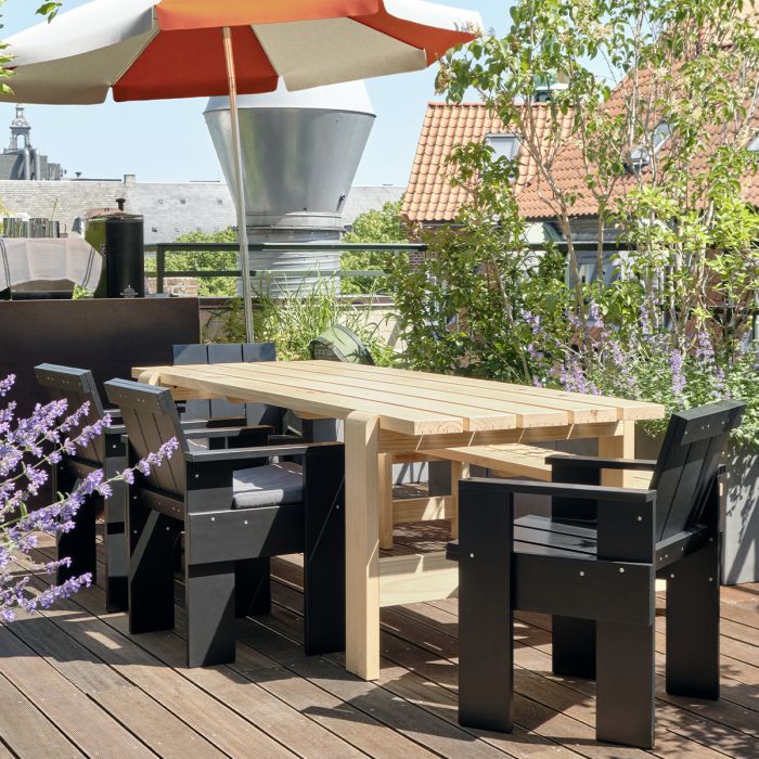 Table rectangulaire Weekday de Hay. La table Weekday de Hannes & Fritz a été inspirée par l’idée de rassembler les gens et d’expériences culinaires communes. Combinant une présence solide et robuste avec des joints légèrement arrondis, la table Weekday transmet un sentiment de chaleur et de familiarité qui invite aux repas partagés et à une atmosphère sociale. Présentant la même construction simple que la table de pique-nique classique, elle est fabriquée en planches de pin solides et durables qui se patineront magnifiquement et dureront de nombreuses années à venir. Le caractère fort mais universellement attrayant de la table Weekday, combiné à son traitement de surface à base d’eau résistant aux intempéries, la rend adaptée à une utilisation en extérieur dans un large éventail d’environnements, des cafés et parcs publics aux jardins privés ou partagés.