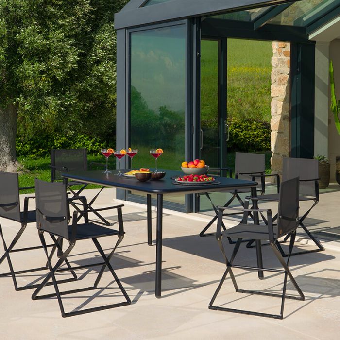 Matériaux : traitement anti-corrosion, résiste à l'humidité, aux UV, structure et plateau rectangulaire en aluminium verni