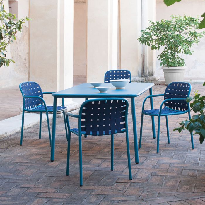 Cette table rectangulaire en aluminium avec son plateau en frêne thermotraité a été conçue pour se fondre à merveille dans les espaces urbains, interprétant leur esprit contemporain. Avec ses lignes simples et modernes, la table Yard légère et résistante sera aussi à l'aise dans une cuisine que sur une terrasse. Elle se décline dans une multitude de coloris et habillera avec élégance et style votre intérieur ou votre extérieur.