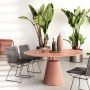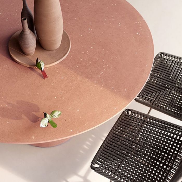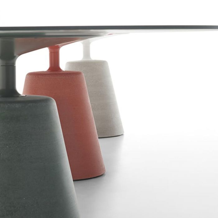 La table iconique, avec sa silhouette fluide et élégante, révèle complètement la nature de ce qu'elle représente: «une table ronde» qui semble flotter au-dessus d'un socle solide et inorganique. Un mélange de matériaux naturels et industriels qui sont mélangés pour créer un nouveau produit avec un design lisse, suivant la même philosophie de la collection Flow. Un objet solide raffiné, léger et stable, aussi bien radical que sensuel. Le style unique de Rock Table, basé sur des formes simplifiées, est combiné à des systèmes de production innovants, ce qui rend les tables MDF Italia adaptées non seulement aux salons modernes, mais également aux conceptions de salons et aux contextes de travail, tels que les bureaux, les salles de réunion, les salles de conférence identité forte. En 2020, Rock Table sera enrichie de nouvelles finitions extérieures: plateau en ciment de pierre blanche, combiné avec la base en ciment naturel. Dessus de ciment de pierre verte combinée avec une base de ciment vert. Dessus de ciment de pierre de terre cuite combinée avec une base de ciment de couleur terre cuite.