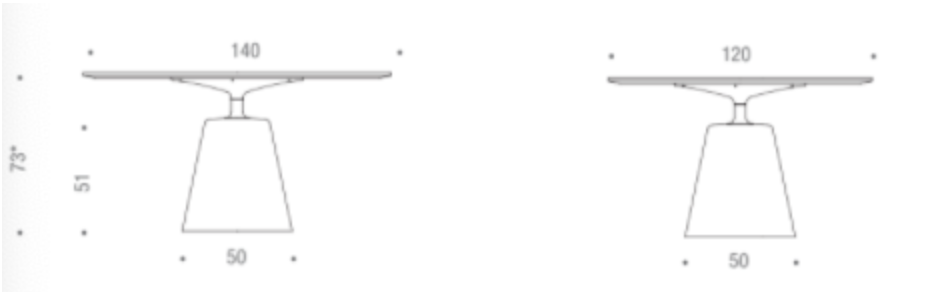 Table 2 : H 73 x diam. base 50 x diam. plateau 140 cm