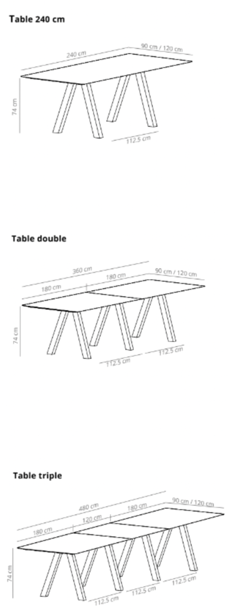 Table triple : L 480 x H 74 x larg. 120 cm (215,3 kg)