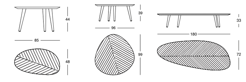 Plateau en bois plaqué en rouvre verni couleur naturel, ou verni à pore ouvert de couleur noire, ou plaque en noyer Canaletto. Le plateau au-dessous est verni couleur noire. Pieds en acier tubulaire vernis couleur noir mat.