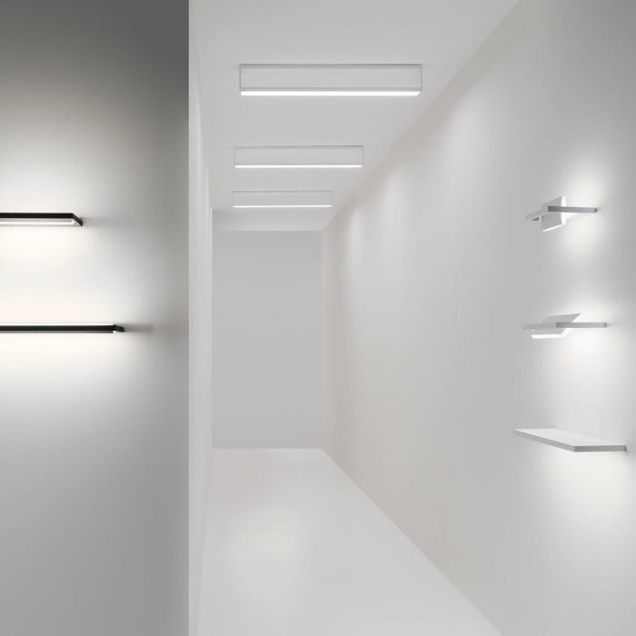 Tablet est une famille de lampes minimalistes à lumière directionnelle. Dans un fin cadre rectangulaire sont encadrées les sources mobiles qui, grâce à la rotation presque complète sur son axe, permettent l'orientation de faisceaux lumineux directs, indirects ou combinés.