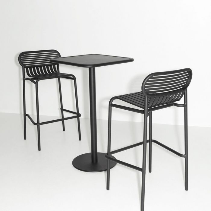 Tabouret de bar Week-end de Petite Friture par le studio Brichet Ziegler. Pensée pour une utilisation pratique, les chaises de bar design sont empilables. La forme ovale et cernée dessine les dossiers pour qu’ils deviennent un signe graphique. Le travail des lattes horizontales et verticales comme des rayures, souligne les pleins et les vides, affirmant l’identité de la collection.