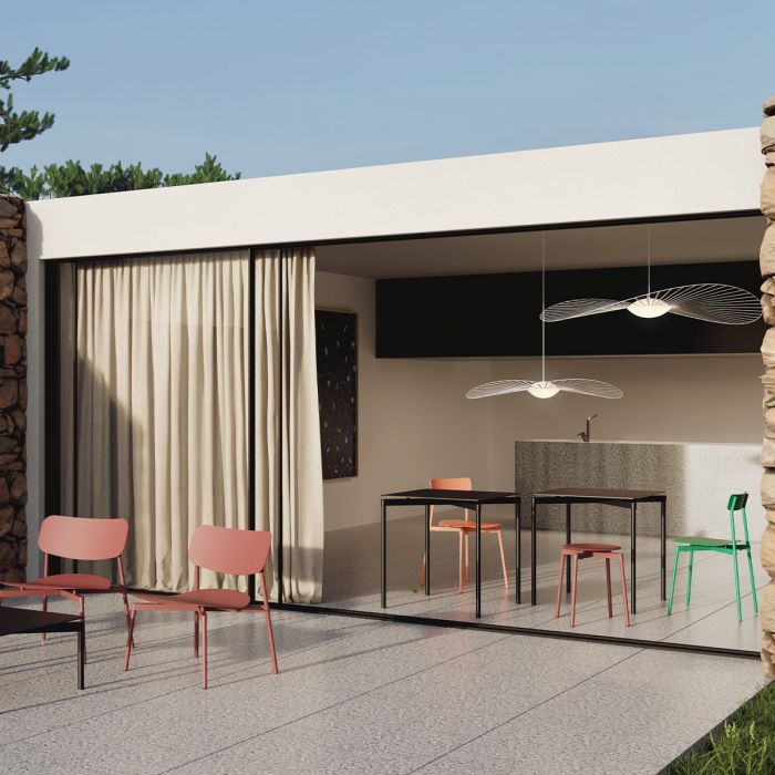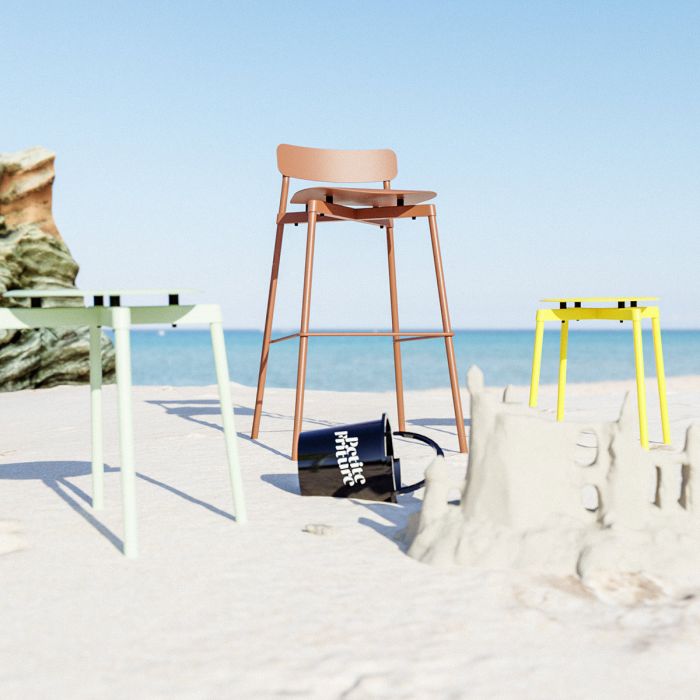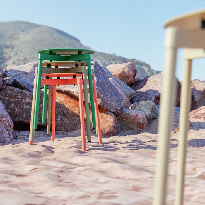 Tabouret Fromme de Petite Friture par Tom Chung. Résistant et léger, conçu pour un usage indoor et outdoor, ce tabouret design est proposé en noir, bleu, vert menthe et corail et brun rouge pour des compositions originales et audacieuses.