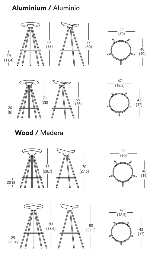 Le tabouret Jamaica est déjà un classique du design espagnol et après plus de 25 ans, il reste l'un des tabourets les mieux conçus. Il est sur le marché depuis plus de 25 ans et reste aussi actuel qu'au premier jour, tant dans sa version en aluminium que dans sa version en bois de hêtre.