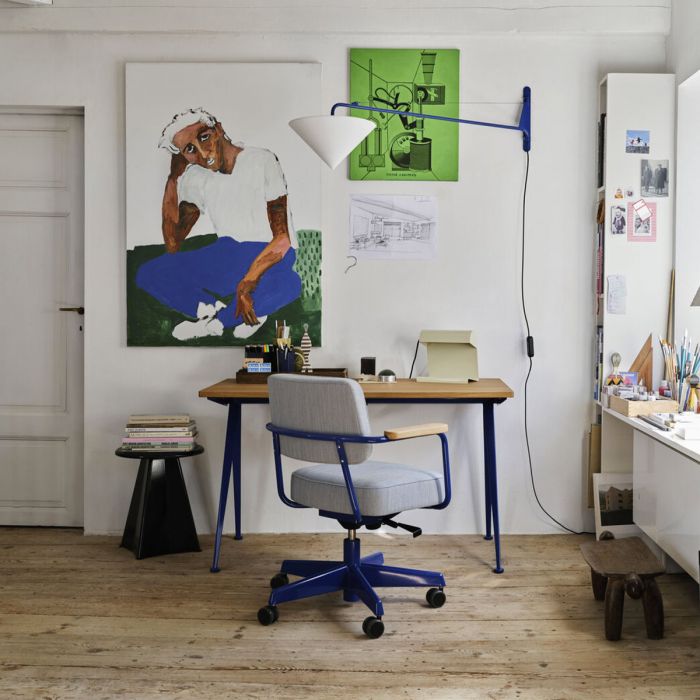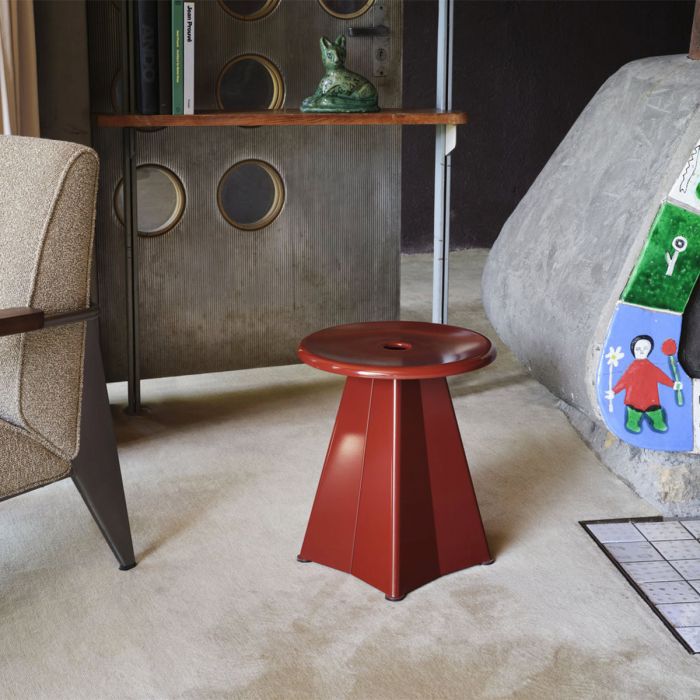 Jean Prouvé a créé Tabouret Métallique ainsi que deux autres suggestion de modèles en métal en 1936 pour la Maison d’éducation surveillée de Saint-Maurice. La création élaborée dans les ateliers de Jean Prouvé n’a jamais été produite et est à présent fabriqué pour la première fois pas Vitra. Le châssis en tôle pliée présente des affinités structurelles avec la table Trapèze créée ultérieurement. Tabouret Métallique est un tabouret pratique qui peut également être utilisé comme petite table d’appoint et se décline dans une gamme de couleurs originales de Prouvé.