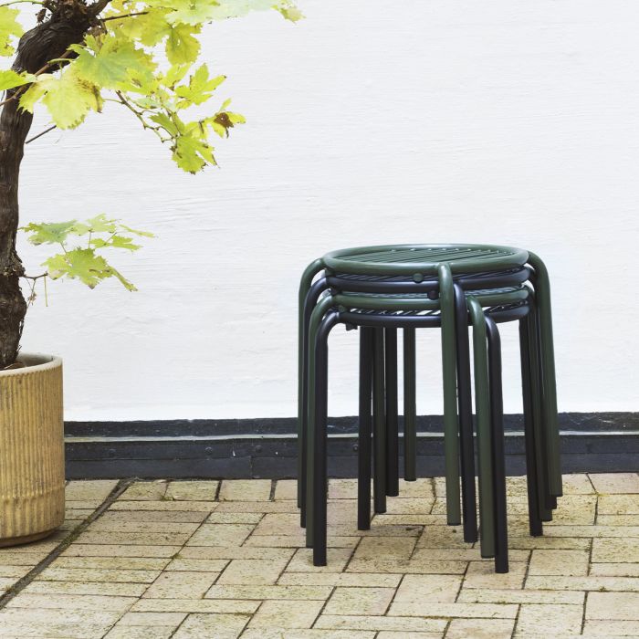 Tabouret Vig de Normann Copenhagen par Simon Legald. Vig est une collection de mobilier d'extérieur au design intemporel et fonctionnel, fabriquée à partir d'un acier à double revêtement en poudre pour résister à l'usure d'une utilisation en extérieur.
