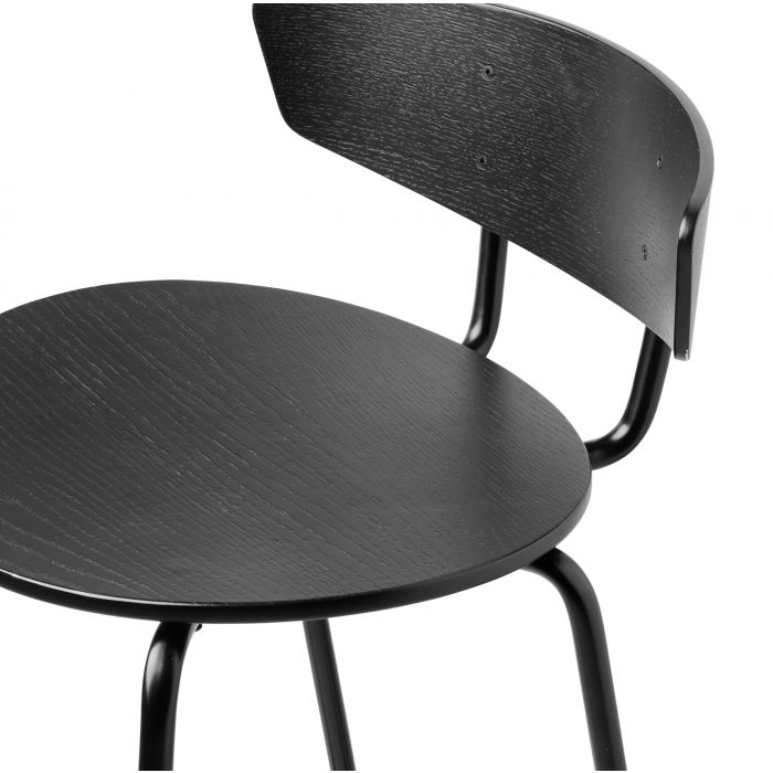 La famille Herman est toujours en croissance, et la chaise Herman est maintenant disponible en tabouret de bar. Les surfaces noir foncé sont faites de placage de chêne et soutenues par la conception légère de métal enduit de poudre. La chaise Herman vous accueillera avec son dossier large en s'assurant que vous resterez à l'aise pendant des heures et des heures. Les chaises sont facilement empilables, et comme un détail joliment ajouté les angles des dossiers en bois sont conçus de sorte que les chaises puissent être accrochées sur la table. De cette façon, vous pouvez facilement nettoyer sous la table et les chaises ne prennent pas de place lorsque vous n'en avez pas besoin. Le danois Herman Studio a conçu la chaise Herman, et il est produit par ferm LIVING.