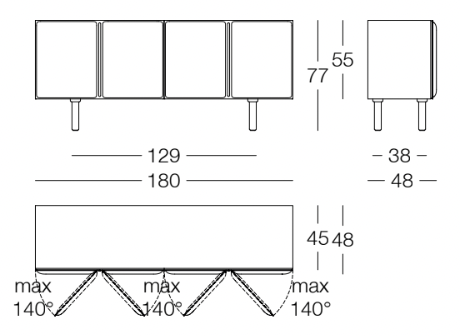 Taille 2 : H 77 x L 180 x Prof.48 cm