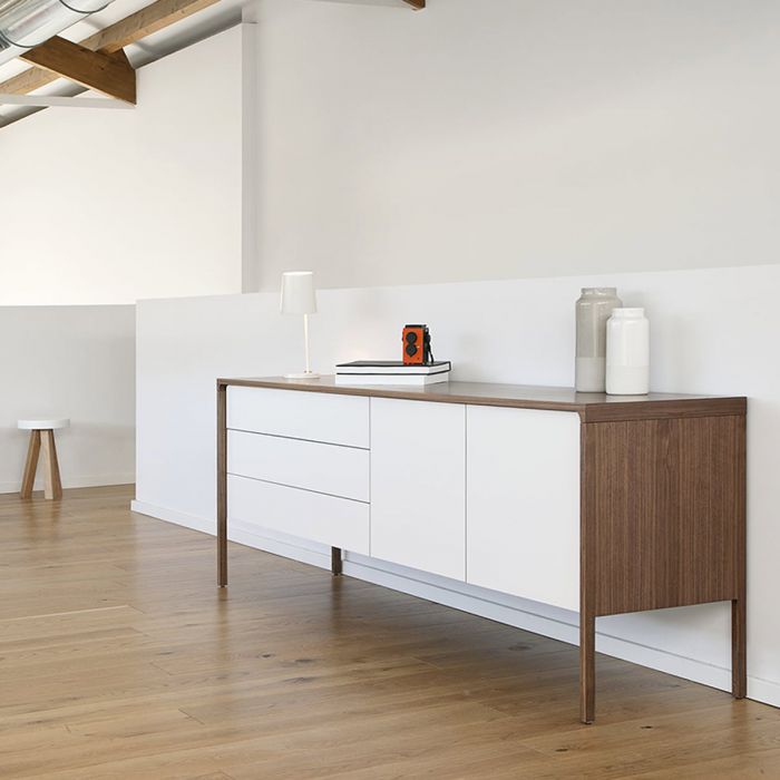 Tactile est un buffet, vainqueur du Wall Paper 2008, subtilement soutenus à leurs extrémités par des pieds élancés aux pieds réglables.