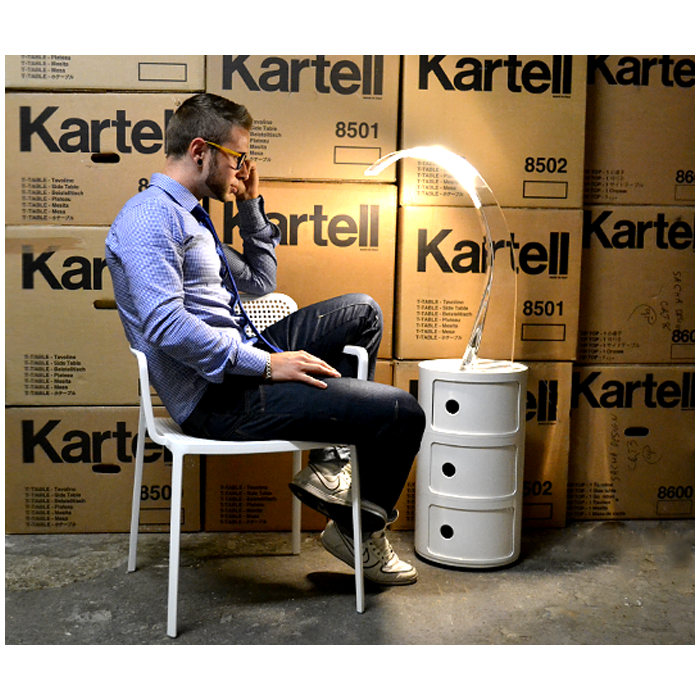 Plus qu’une lampe, Taj est un signe en trois dimensions, une sculpture de lumière, une présence qui nous tient compagnie aussi bien sur un bureau que sur un meuble. Aussi belle allumée qu’éteinte, la lampe Taj de Kartell utilise la technologie L.E.D. pour optimiser et réduire au maximum la source de lumière. Grâce au savoir-faire unique mis en oeuvre par l’entreprise, elle représente également la réalisation d’un nouveau défi technologique pour Kartell. Taj existe en version « naked » complètement transparente et en version couleur brillante opaque.