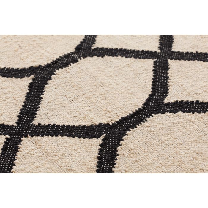 Avec la tapis Rodas, Gan réinterprète de manière contemporaine et joyeuse les motifs traditionnels des tapis d’Orient. e tapis bicolore joue l’accumulation de motifs amples et répétitifs, aux lignes et courbes pures et hypnotiques, obtenues en recourant à des techniques traditionnelles de tissage. Réalisé en mêlant jute et viscose, ce tapis Kilim est tissé à la main selon des méthodes ancestrales.