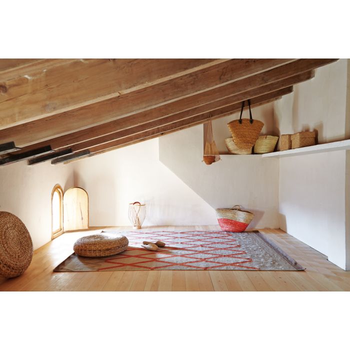 Avec le tapis Sioux, Gan réinterprète de manière contemporaine et joyeuse les motifs traditionnels des tapis d’Orient. Ce tapis bicolore joue l’accumulation de motifs amples et répétitifs, aux lignes et courbes pures et hypnotiques, obtenues en recourant à des techniques traditionnelles de tissage. Réalisé en pure laine vierge, ce tapis Kilim est tissé à la main selon des méthodes ancestrales.