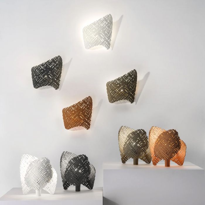 La lampe TEA, quant à elle, enrichit sa famille et se décline en version APPLIQUE dans les quatre finitions anthracite, blanc, terre cuite et gris tourterelle.