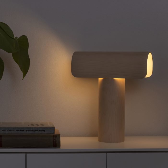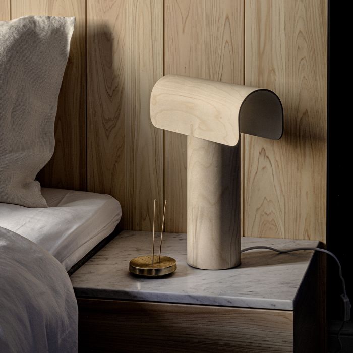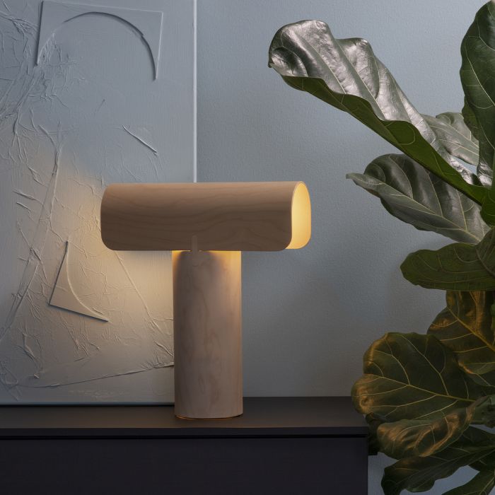 Une lampe de table audacieuse au ton sculptural. Notez les détails dans la conception des joints.