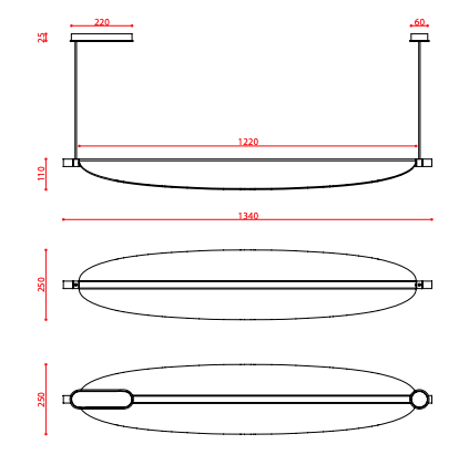 L 134 x H 11 x Prof. 25 cm