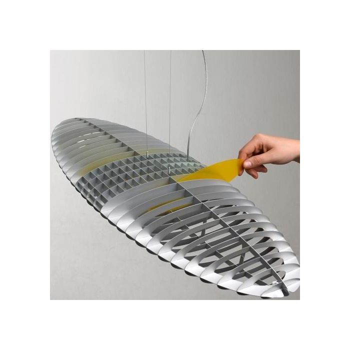 Titania est une suspension dessinée et imaginée par Paolo Rizzatto et Alberto Meda pour Luce Plan. Sa forme elliptique est composée de différentes lamelles conçues spécialement afin d'éviter tout ébouissement mais aussi afin de refléter la lumière et dissiper toute chaleur.
