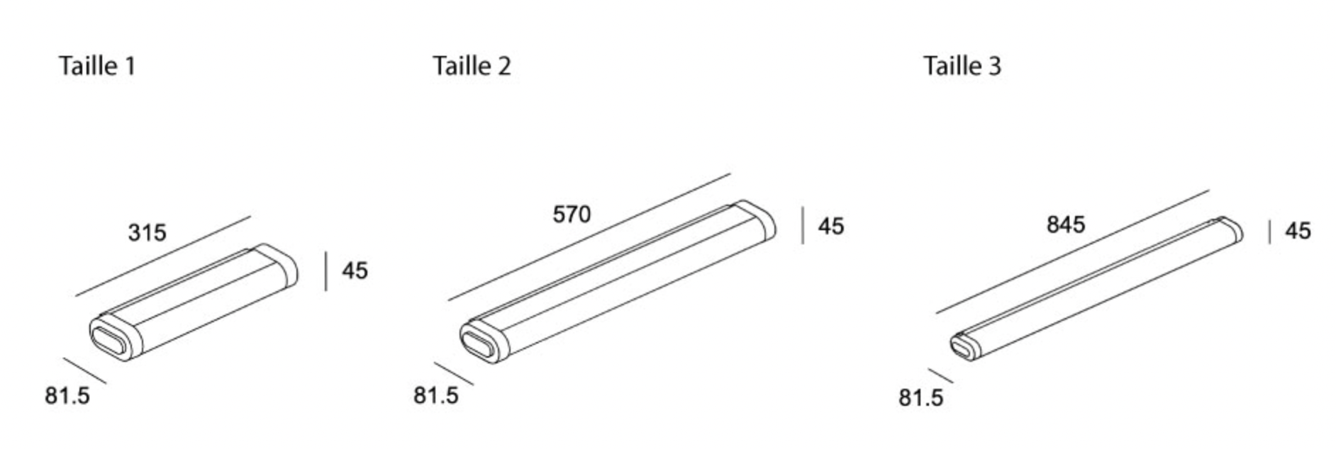 Taille 3 : L 84.5 x H 4.5 x Prof. 8.15 cm