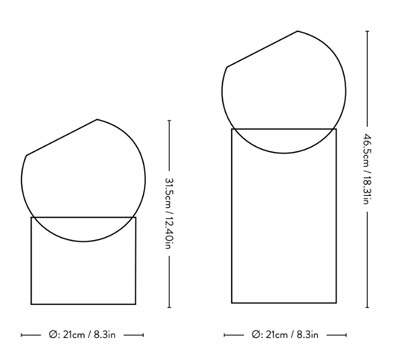 Matériaux : aluminium laqué ou plaqué, tube acrylique transparent et cordon textile