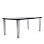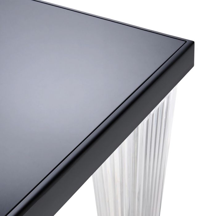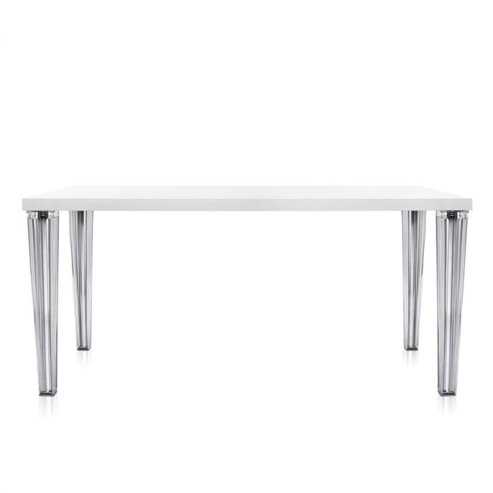La série des tables TopTop se distingue par son piètement transparent, sa forme et renforcée par une âme en métal.