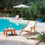 La splendide collection Chelsea est particulièrement appréciée par ceux qui aime cette tradition capable d’exalter les déclinaisons sinueuses du bois du teck, créant ainsi des atmosphères raffinées et intemporelles. Le transat Chelsea pliable en teck opte pour un style classique. La toile est disponible en coton couleur Coton et elle est munie d'une poche où l'on peut mettre un coussin.