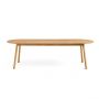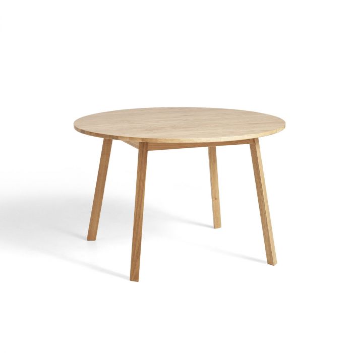 Triangle Leg Table de Hay. Motivé par le désir de créer plus d'espace autour d'une table ronde, Simon Jones a conçu la série de tables et de bancs à pieds Triangle. Les extrémités rectangulaires du plateau de table et du banc ont été arrondies, créant un cadre convivial qui maximise le nombre de places assises autour de la table. Fabriquée en chêne massif avec une finition huilée ou laquée transparente, cette série polyvalente convient à une large gamme d'environnements de restauration ou de bureau privés et publics.