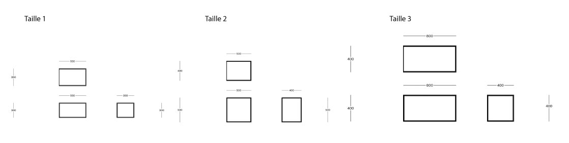 Taille 3 :L 40 x larg. 80 x H 40 cm