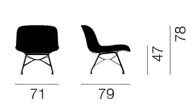 Sans accoudoirs : H 78 x larg.71 x Prof.79 cm