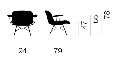 Avec accoudoirs : H 78 x larg.94 x Prof.79 cm