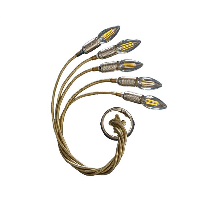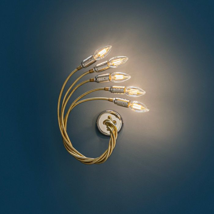 Turciu 5 est un luminaire qui s’utilise en applique murale ou en plafonnier. La lampe est composée de 5 bras flexibles qui possèdent à leur extrémité une ampoule en forme de bougie. Les bras s’articulent et s'orientent librement dans tous les sens, ce qui vous permet d’adapter la lampe à vos envies et besoins de lumière.