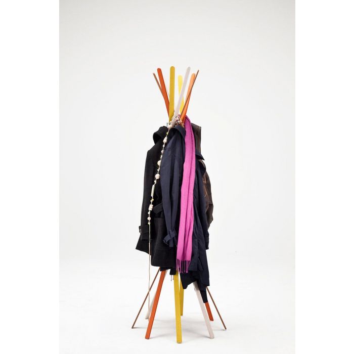 Twist est un porte-manteaux créé par Burtscher & Bertolini pour Horm. Fait de courbes naturelles et solides, son design lui donne un charme champêtre particulier sans lui enlever de toute son utilité. La tension des huit lattes rend possible sa stabilité. Un porte manteau atypique qui apportera une touche tendance à votre intérieur !