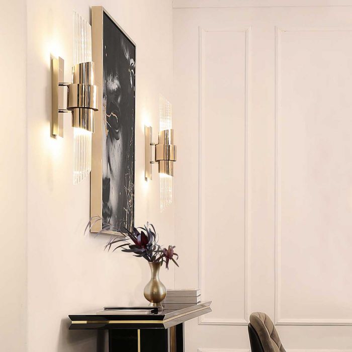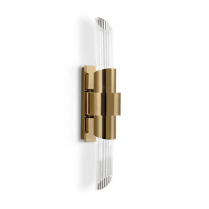 Tycho Wall de Luxxu est une apllique qui crée un environnement de luxe cosmopolite en transmettant un éclairage intime inspiré par son design comme un reflet sur l’eau. Laiton plaqué or et verre cristal, la combinaison idéale pour être utilisé dans plus d'une pièces.