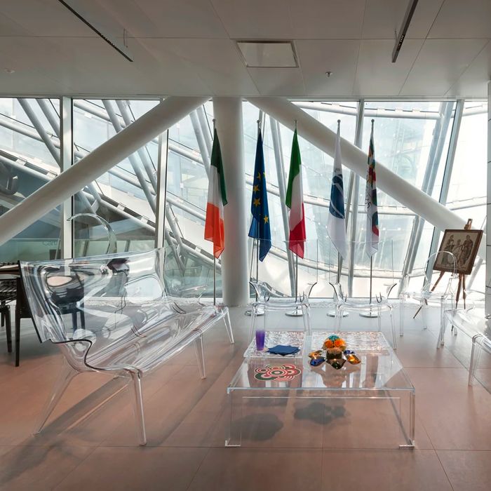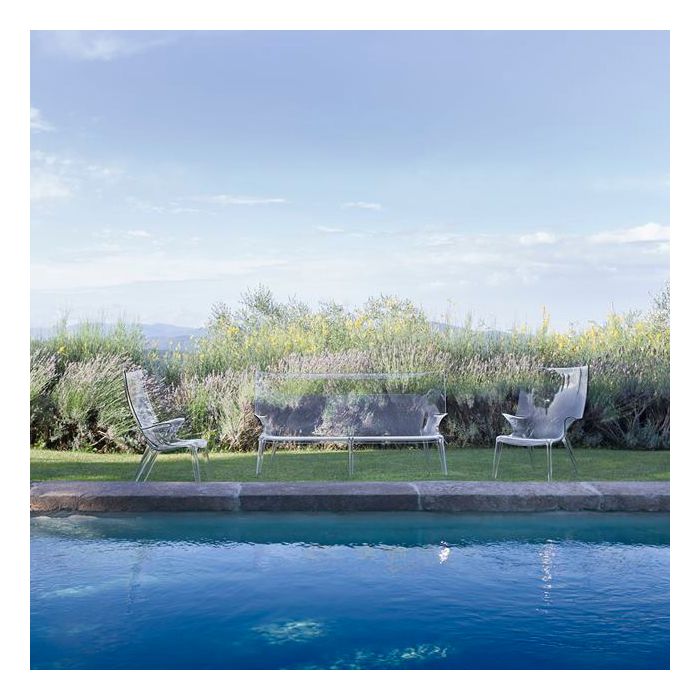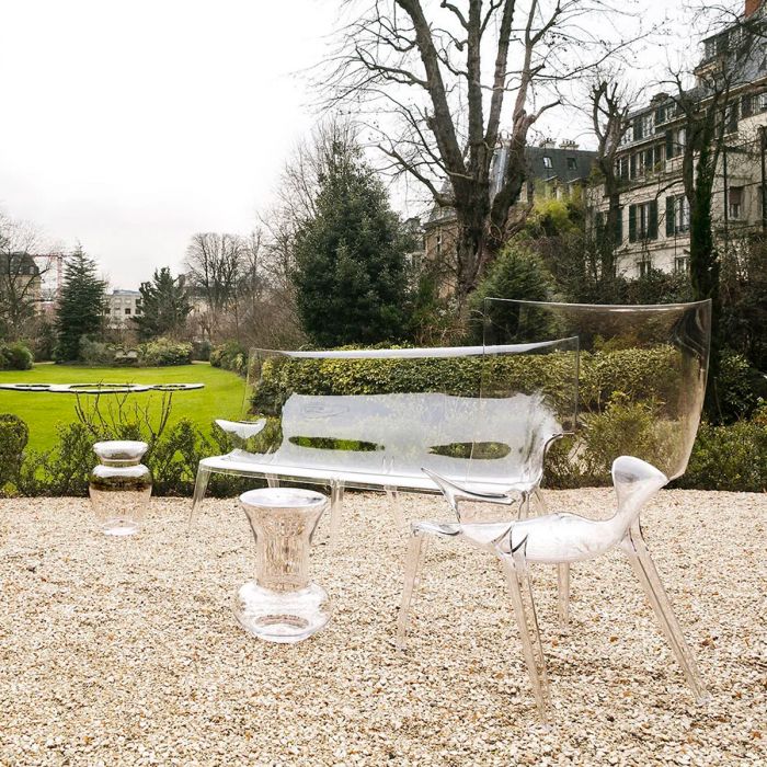 Le canapé Uncle Jack réalisé par Philippe Starck est design et épuré. Le polycarbonate transparent est moulé en une seule fois dans un même moule. Une technologie de moulage par injection du plastique appliquée à un meuble avec de telles dimensions est une véritable innovation. Philippe Starck décrit ainsi le canapé Uncle Jack : "C'est la version minimaliste et technologique des fauteuils et des divans qu'utilisaient mes oncles et mes tantes pour fumer la pipe ou tricoter paisiblement devant le feu, en toute sérénité. Les temps ont changé et les meubles avec... mais nos rêves sont toujours les mêmes." Les formes sont ultra accueillantes : grand dossier protecteur et accoudoirs aux lignes ondulantes qui semblent vous tendre les bras.
