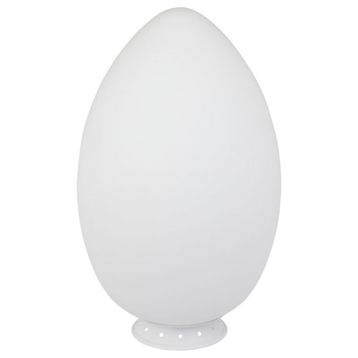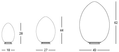 Lampe de table en forme d'oeuf par FontanaArte avec monture en métal verni blanc et diffuseur en verre soufflé blanc satiné. Sa forme, tout en douceur et en courbes, s'adapte parfaitement à tout intérieur. A choisir parmi 3 tailles.
