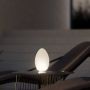 Uovo rechargeable de Fontana Arte par Ben Swildens. Lampe de table rechargeable en verre soufflé. Source lumineuse LED intégrée et dimmable – Un bouton tactile transparent permet d'allumer et d'éteindre la lampe et de régler l'intensité lumineuse. La lampe est alimentée par une batterie rechargeable d'une durée de vie de 8 heures, rechargeable via le câble USB inclus. Adaptateur secteur non inclus dans l'emballage. Convient pour une utilisation en intérieur et en extérieur. Une forme naturelle et un symbole intemporel de perfection, où symétrie et asymétrie cohabitent harmonieusement. Conçue en 1972, la « coquille » de l'œuf contenait une source lumineuse : une idée ironique qui fonctionne encore aujourd'hui. Comme dans la nature, la coquille de la lampe UOVO est l'incarnation de la légèreté absolue, une forme élégante en verre soufflé satiné blanc qui diffuse une lumière chaude et uniforme.