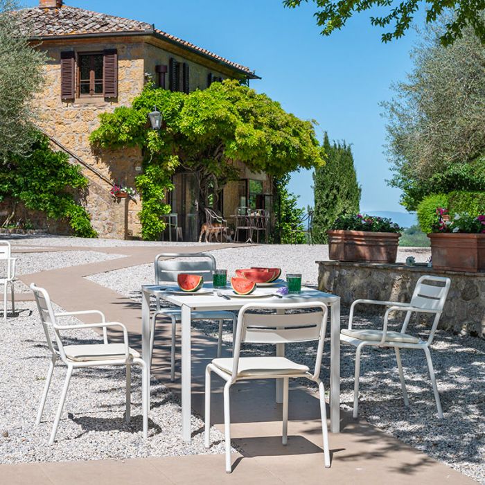 Urban, en aluminium, interprète l’esprit contemporain qui caractérise les espaces urbains d’extérieur, créant des atmosphères de rencontre amusantes et pétillantes, également grâce à ses couleurs accrocheuses qui valorisent une ligne classique et la légèreté naturelle de l’aluminium. Résistante, pratique et légère, Urban est la solution idéale pour un mobilier d’extérieur simple, gai et d’impact immédiat.