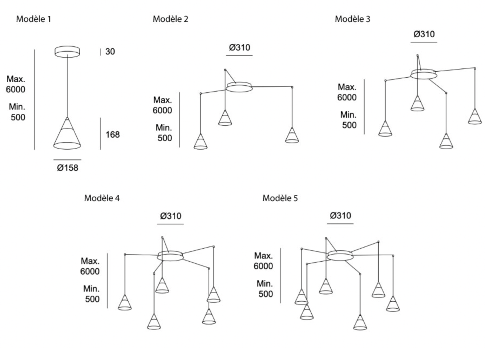 Modèle 5 : LED 2700K, CRI 80, 25W, 268 Lm