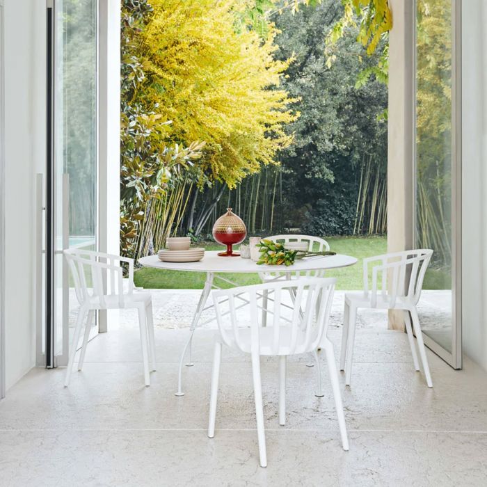 Un hommage à la ville de Venise dans une chaise de table mais également de salon qui unit des lignes classiques et confort. Venice est adaptée à une utilisation intérieure et extérieure et est disponible en six variantes de couleur : blanc, gris, gris tourterelle, vert sauge, rouille et noir.