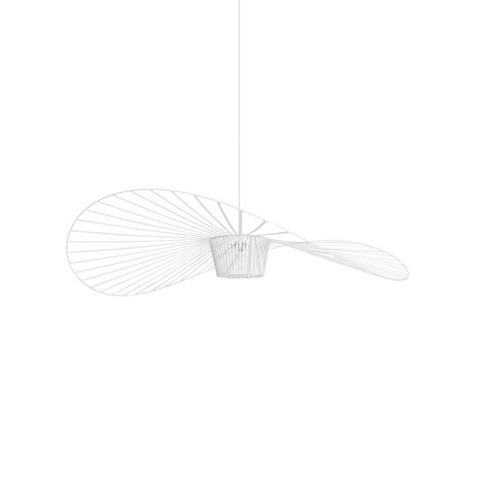 Vertigo Suspension - Ø 140 cm de Petite Friture par Constance Guisset. La suspension Vertigo est une « lampe cabane », selon les termes mêmes de son designer ; à la fois aérienne et graphique, elle s’adapte aux grands volumes comme aux petits, où elle recrée un espace propre et intime.