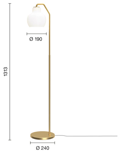 Le lampadaire VL Ring Crown fournit une lumière dirigée vers le bas grâce à son ouverture en bas de l’abat-jour en verre brillant soufflé à la bouche. Le verre blanc opalin à trois couches fournit un éclairage doux, diffus et uniforme entourant la lampe, garantissant un éclairage agréable et non-éblouissant et une ambiance accueillante. Lancées en 2025, les lampes de table et lampadaires VL Ring Crown rendent hommage à la série originale du même nom, dont l’histoire remonte à plus de 80 ans. Les lampes VL Ring Crown font partie d’une série comprenant une suspension, des lustres et des lampes murales, créées par l’architecte danois Vilhelm Lauritzen pour Radiohuset (maison de la radio), siège de la Danish Broadcasting Corporation, inaugurée juste après la fin de la Seconde Guerre mondiale en 1945. Fidèles au design et aux matériaux originaux, les lampes de table et lampadaires VL Ring Crown sont composées de laiton poli et d’abat-jours en verre blanc opalin soufflé à trois couches brillantes, complétant magnifiquement les designs des lampes d’origine installées à Radiohuset. Vilhelm Lauritzen a également conçu les lampes VL 38, VL Studio et VL 45 pour Radiohuset.