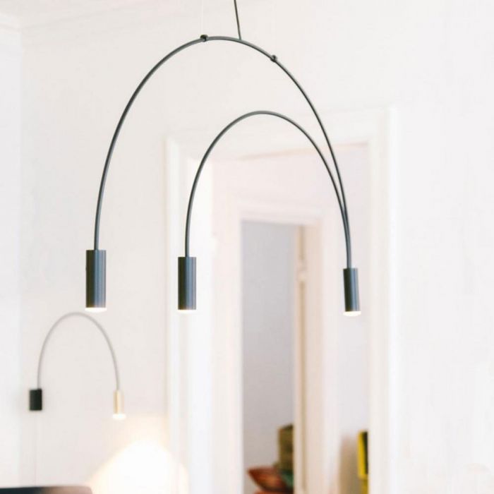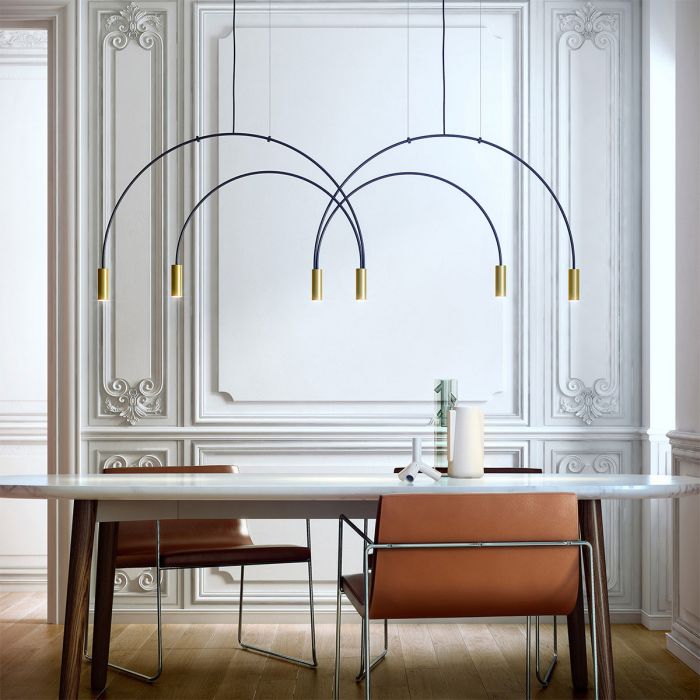 La suspension Volta de Estiluz possède une structure métalique incurvée, des têtes cylindriques en aluminium, ainsi que des diffuseurs en acrylique. Sa hauteur est ajustable et ses câbles sont en nylon transparents. Son style design trouvera sa place dans votre habitat.