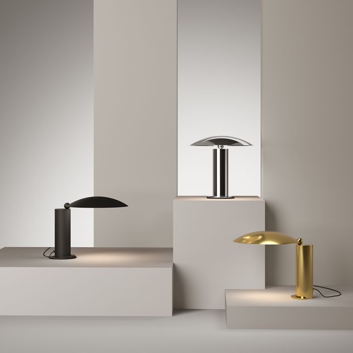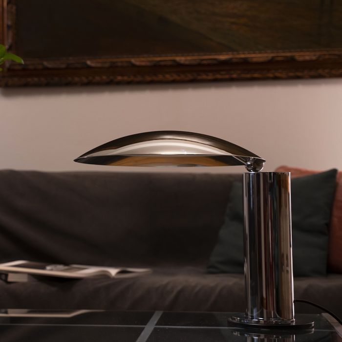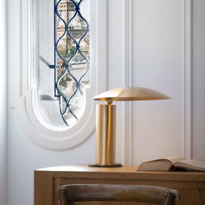 Lampe à poser en métal Washington créée par Jean-Michel Wilmotte en 1983 pour Lumen Center. Cette lampe nous charme par sa forme très originale qui rappelle comme un petit parasol qui fournirait une douce lumière. Adopter cette élégante lampe pour donner du caractère à votre intérieur.