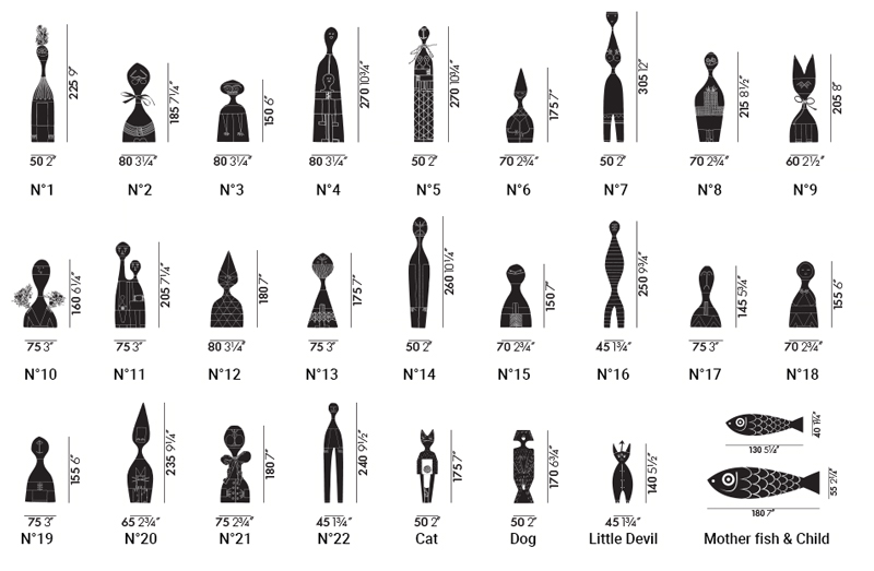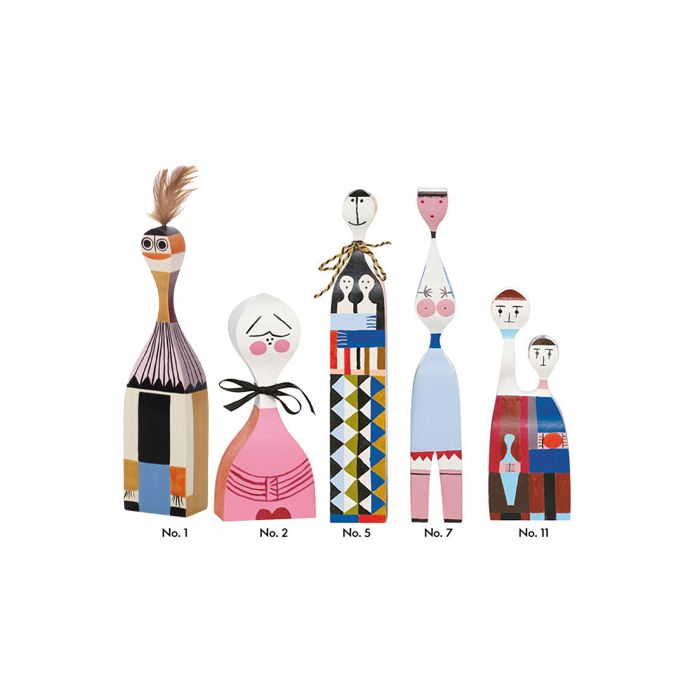 Le designer Alexander Girard compte parmi les personnalités marquantes de l’histoire du design américain de l’après-guerre, au même titre que George Nelson et Charles et Ray Eames. Le design textile était au centre de sa créativité aux multiples facettes, et son étude intensive de l’art populaire d’Amérique du Sud, d’Asie et de l’Europe de l’Est représentait pour lui une source d’inspiration essentielle. Entre l’objet de décoration et le jouet, les Wooden Dolls sont désormais disponibles au grand public, pour enrichir votre aménagement intérieur. Les Wooden Dolls font partie de la collection du Vitra Design Museum, reconnnues internationalement, et exposées dans de nombreux musées et galeries de design. Incontournables, ces petites poupées fabriquées et peintes à la main en bois de pin massif, sont vendues dans leur écrin en bois imprimé. Les Wooden Dolls vous représentent la fantaisie, l’imagination, l’humour et l’amour et apporteront une touche ludique et design à votre intérieur !