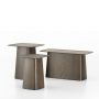 De par leur design, les Wooden Side Tables s'apparentent aux Metal Side Tables conçues en 2004 par Ronan et Erwan Bouroullec pour Vitra. Comme ces dernières, les petites tables d'appoint en bois tirent leur charme du contraste entre les minces plateaux de table et les pieds volumineux en forme de socle. Toutefois, les plateaux en contreplaqué moulé sont légèrement bombés sur le bord, ce qui leur confère une esthétique élégante presque japonaise.
