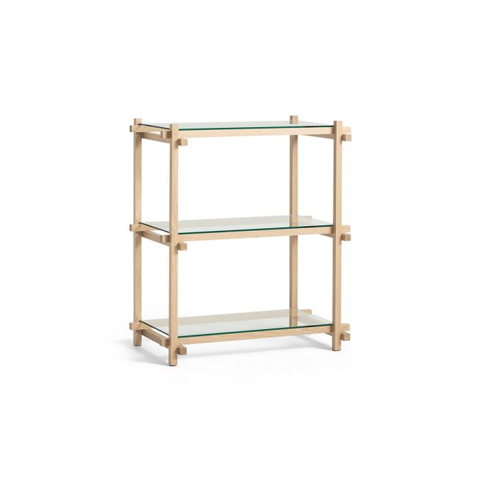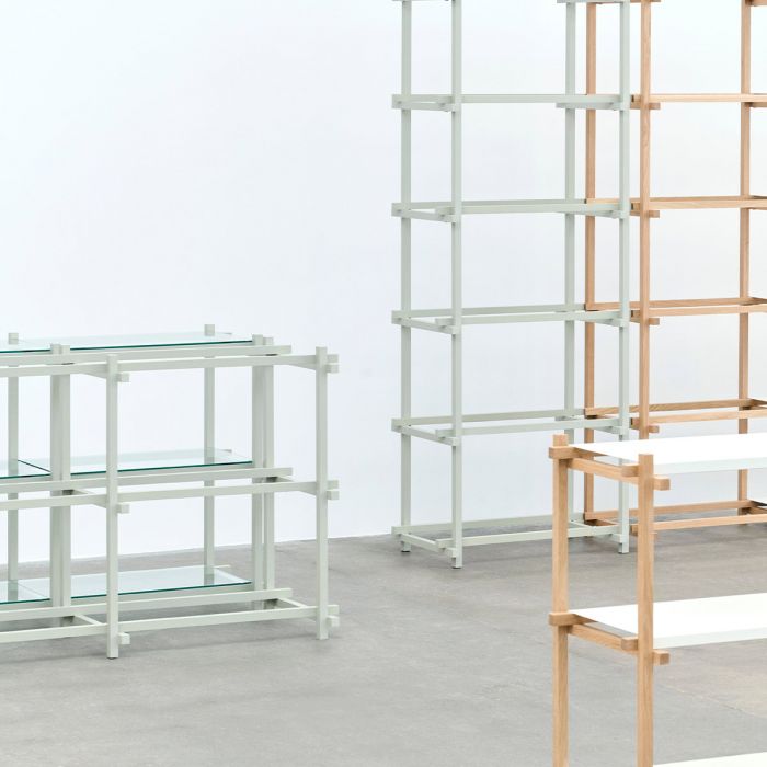 Woody est une interprétation moderne de la traditionnelle échelle inspirés pour créer un système de rayonnage. En l'absence de devanture et de fond, chaque colonne fonctionne comme un morceau autonome de meubles contre un mur. Woody est créé dans l'esprit de la modernité. Rien dans la construction est caché, tous les joints sont visibles et toutes les pièces sont fabriqués industriellement. Dans le même temps un grand effort a été mis en perfectionnant les articulations en terme de forme et de force. Le chêne massif est un matériau incroyablement solide et magnifique, malgré la légèreté dans son apparence, la structure est étonnamment forte et stable.