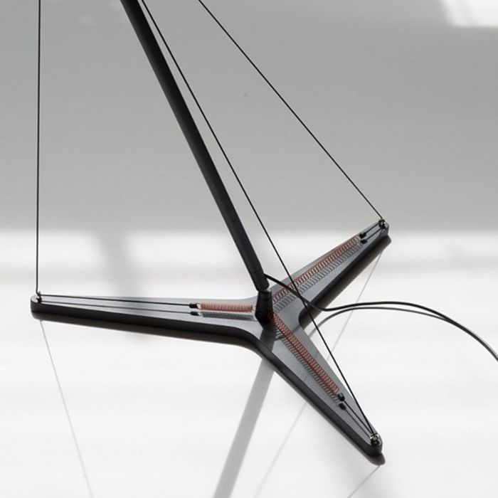 Un système à 3 tirants raccordés avec des ressorts fixés à 120˚ à sur une base en forme de Y permet d’orienter et de balancer la tige dans n’importe quelle direction dans un mouvement fluide et agréable, par un jeu infini d’équilibres. Le réflecteur, particulier et articulé, qui accueille l’ampoule à led, complète la fonctionnalité de Y3.